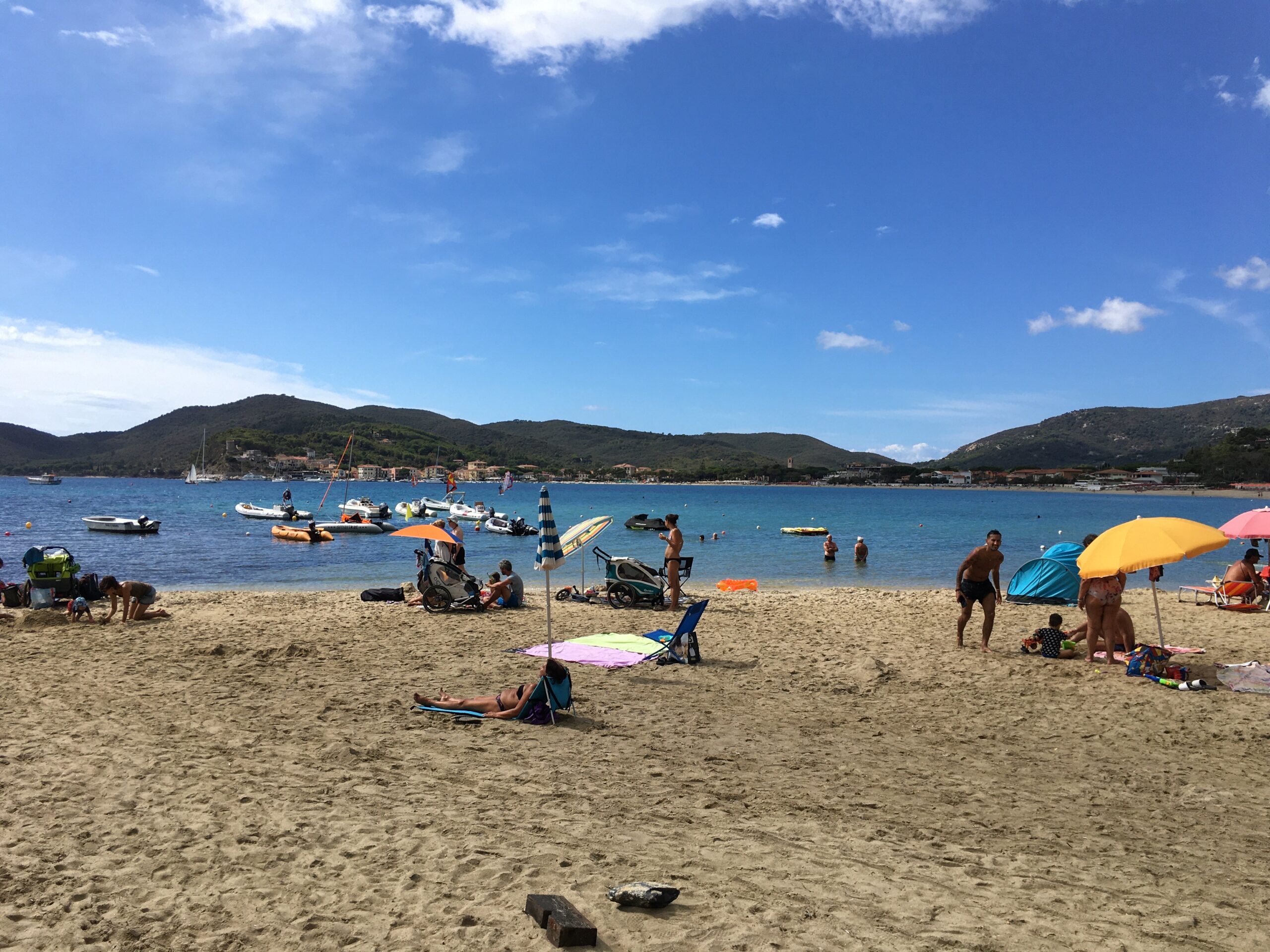 Wieder wolkenlos! Heute ist der Tag die mega Sandburg zu bauen. Unser Nachbar vom Campingplatz meinte, wir hätten wohl eine Baugenehmigung gebraucht dafür 😉